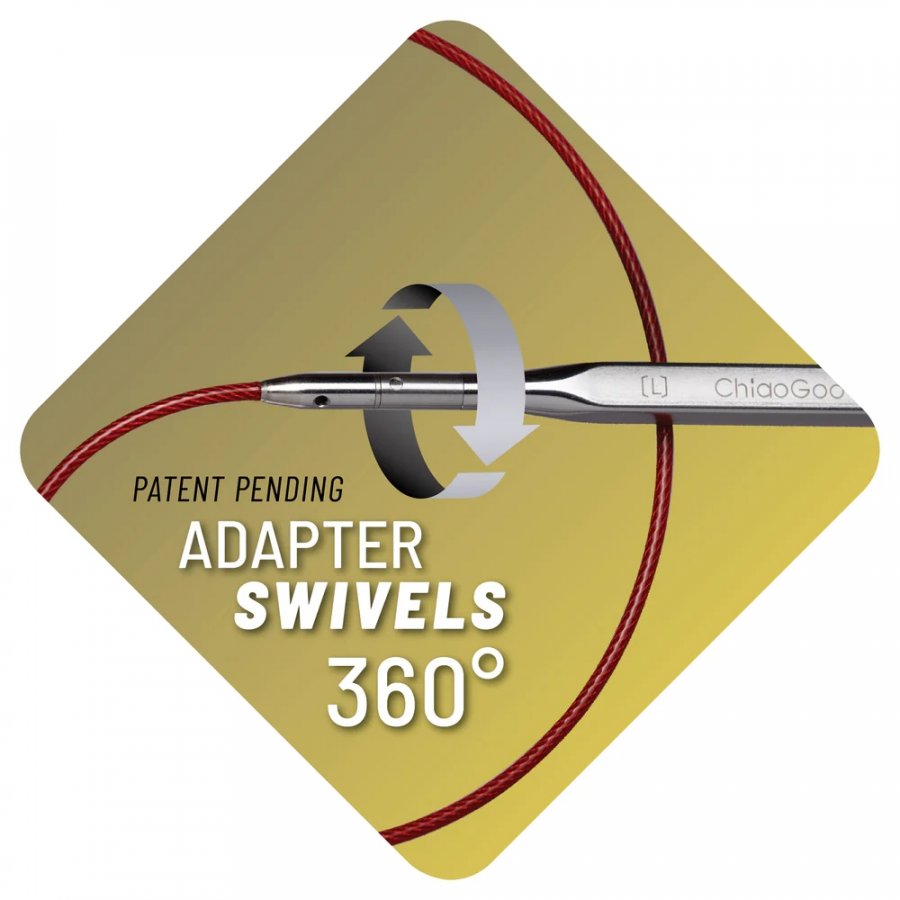 ChiaoGoo’s new SWIVEL Adapters are designed to bring even more comfort and freedom of movement to your interchangeable needle setup. Once attached, the adapter allows your needle tips to rotate smoothly on the cable, reducing twisting, improving flow and making long knitting sessions feel easier on the hands and wrists.