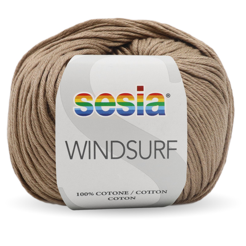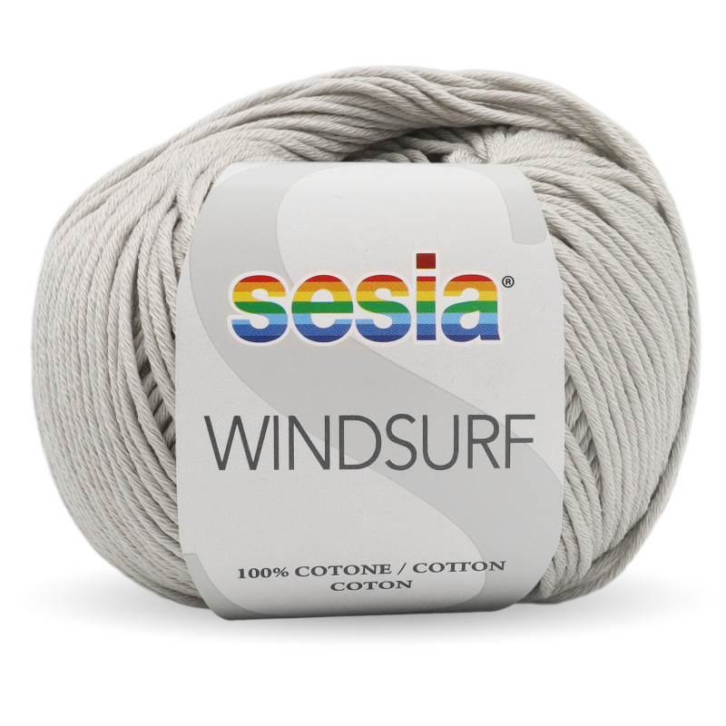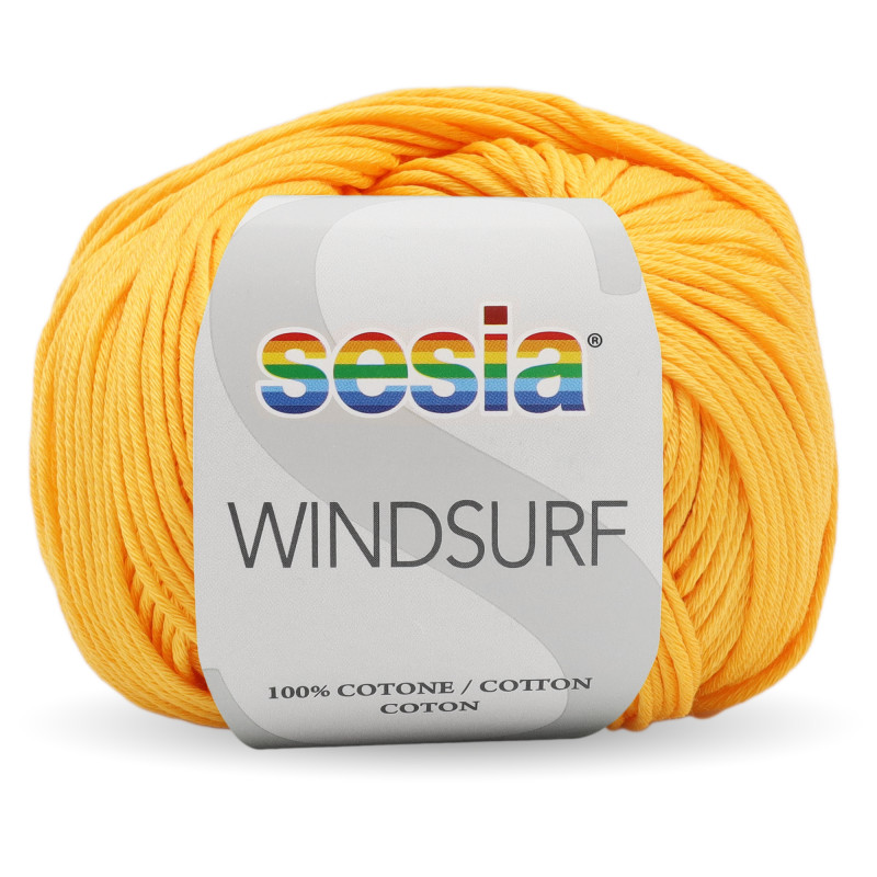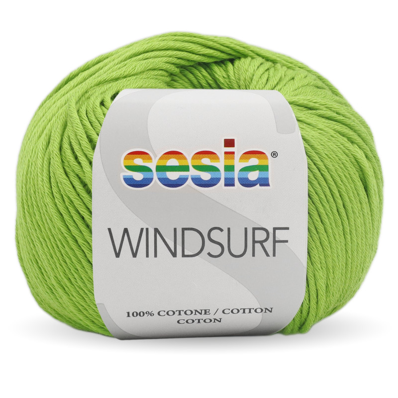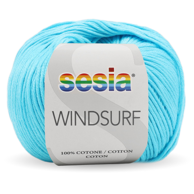 Classic cotton made from soft Egyptian mercerised cotton Knitted pieces are even and smooth and retain their silky sheen and shape even after washing. Windsurf is extremely easy to knit or crochet with. This yarn is also perfect for pot holders, amigurumis, granny squares, tea towels, washcloths and towels. Content: 100% Cotton (combed, mercerized) Weight & Length: 50 g, ca. 108 m Gauge: 10 x 10 cm = 23 sts by 27 rows Needle size: 3,5 - 4 mm made in: Italy