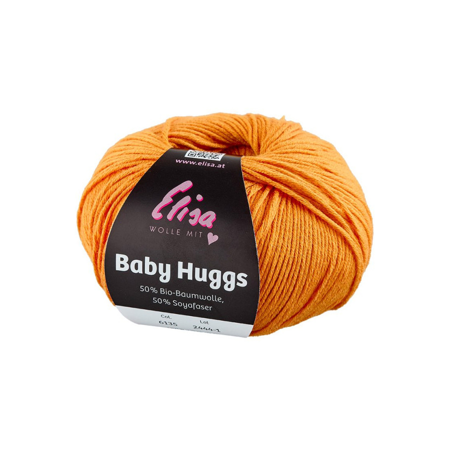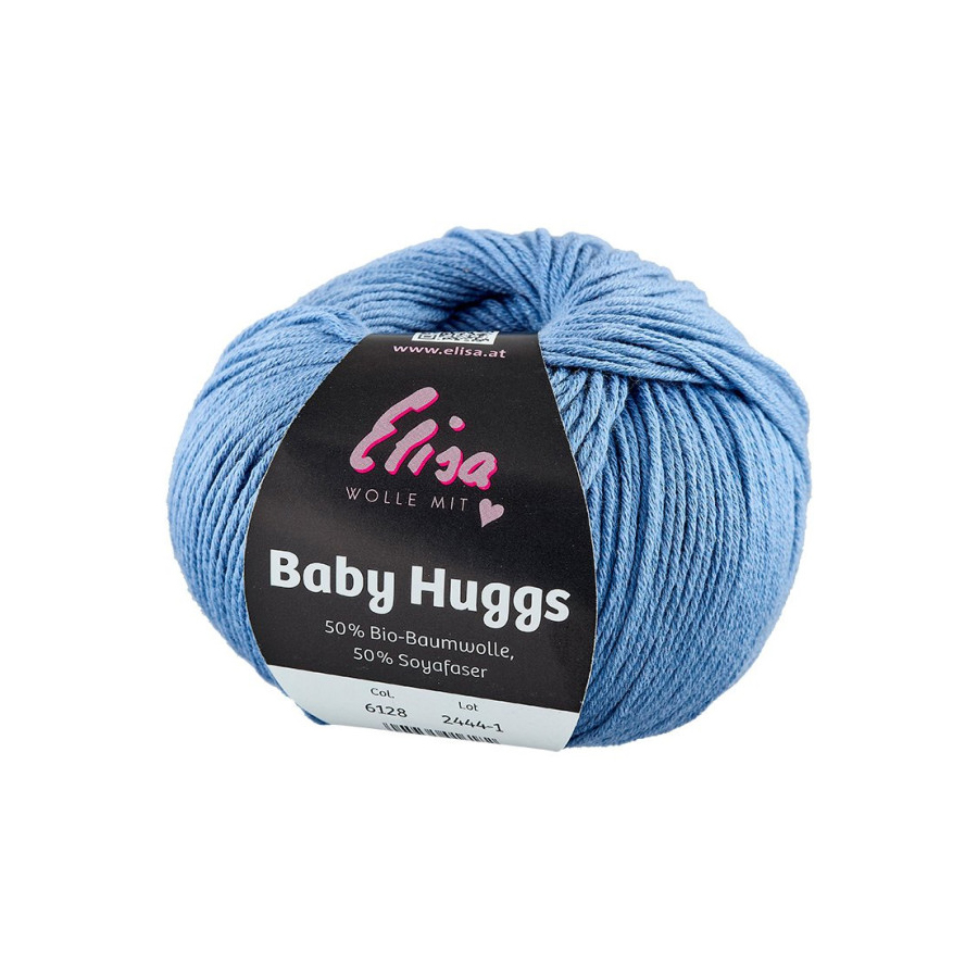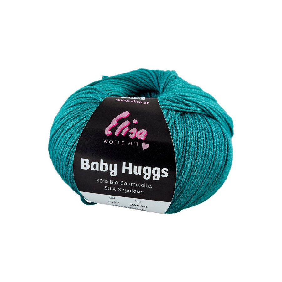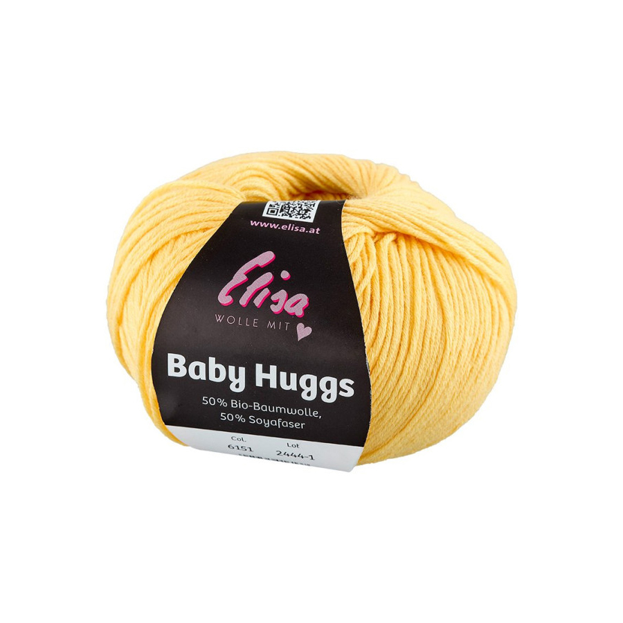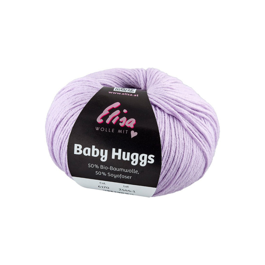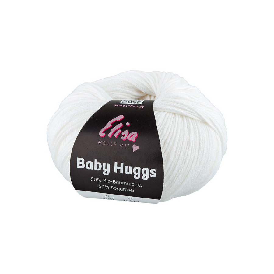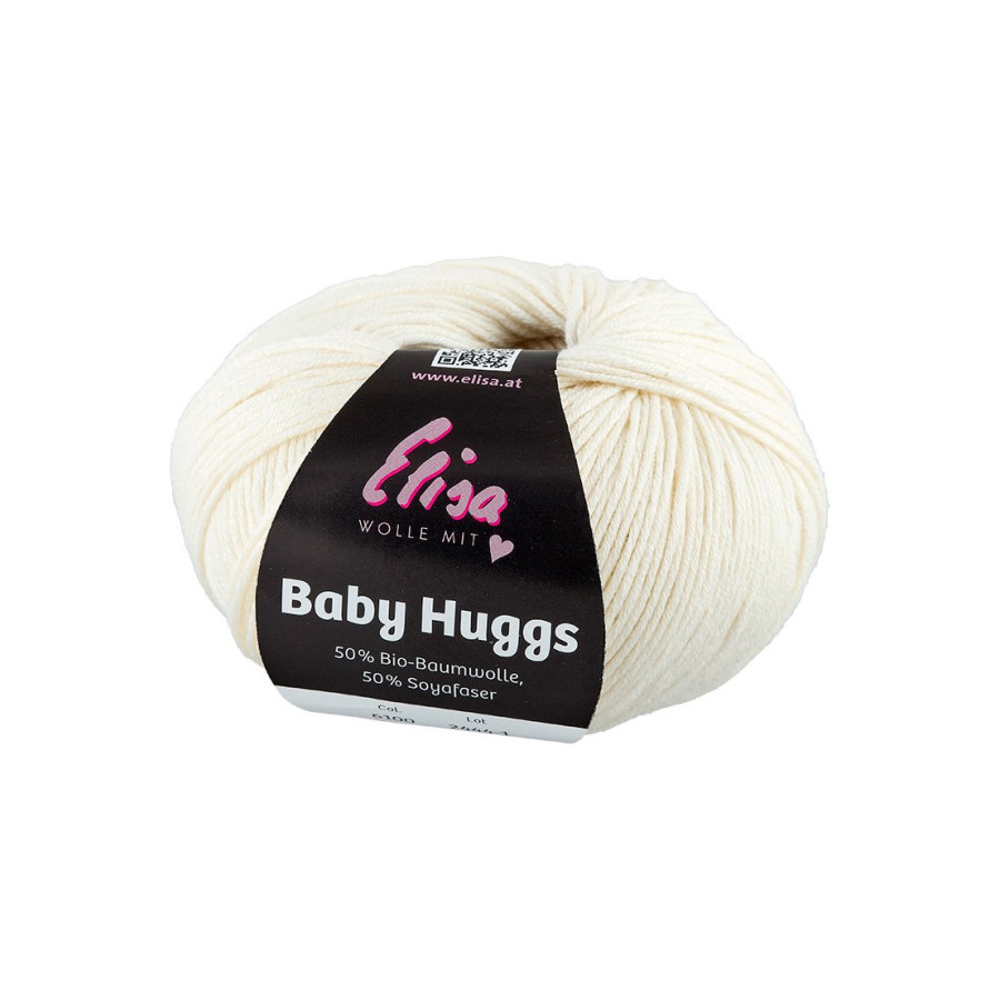 Deux G – pour une double sécurité Doux comme une étreinte, léger comme un sourire : Elisa Baby Huggs associe le coton le plus fin à la fibre végétale de soja – pour une douceur naturelle qui protège et chouchoute les peaux sensibles. Ce mélange spécial garantit un tricot régulier et lisse et une sensation agréable sur la peau – idéal pour les vêtements pour bébés, les accessoires et les doudous préférés.Baby Huggs est non seulement certifié Oeko-Tex Standard 100, classe de produit 1, mais il a également été testé selon la norme DIN EN 71-3 et convient à la fabrication de jouets. Composition: 50% Coton, 50% Soja fibre Poids/longueur: 50 g, ca. 125 m Echantillon: 10 x 10 cm = 26 M et 36 R Aiguilles: 3 - 3,5 mm Consommation: Taille 40 approx. 500g fabriqué en: Croatie
