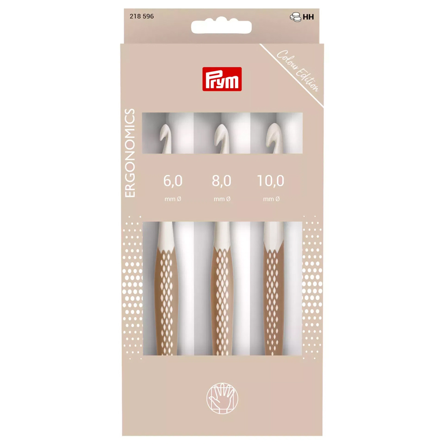 Crochets dans la couleur tendance taupe À offrir ou à garder pour soi ? Une décision difficile à prendre avec le set de crochets à tricoter en laine de Prym Ergonomics. Le set comprenant 3 crochets à tricoter ergonomiques dans la couleur tendance taupe est un superbe cadeau, mais il aura également fière allure dans votre propre collection de crochets à tricoter.